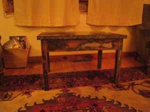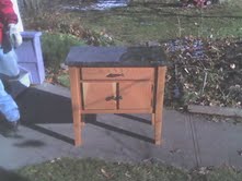 5 hours. It is made of salvaged fir, brass hardware and granite. Steve sanded the granite for a long time.