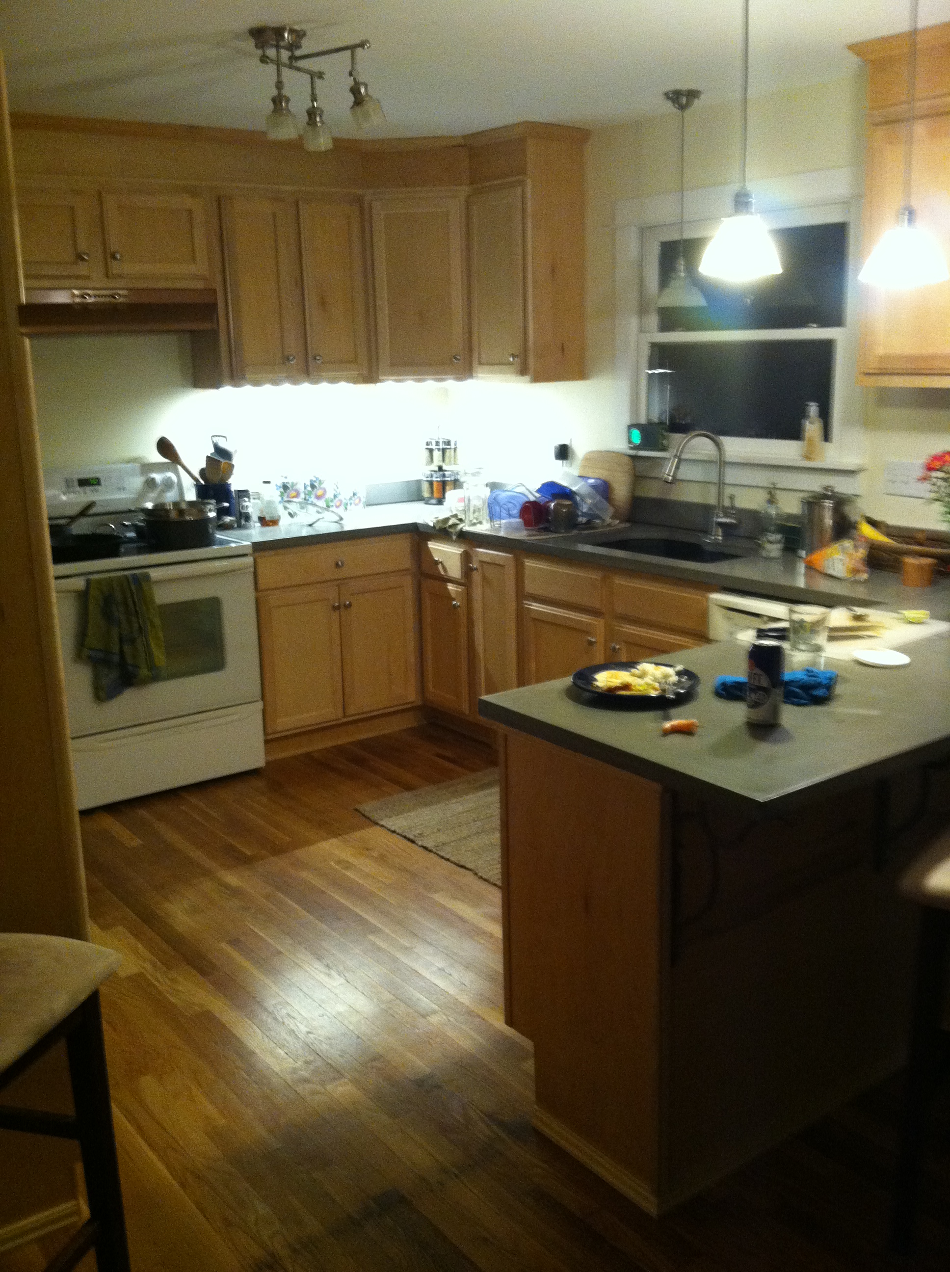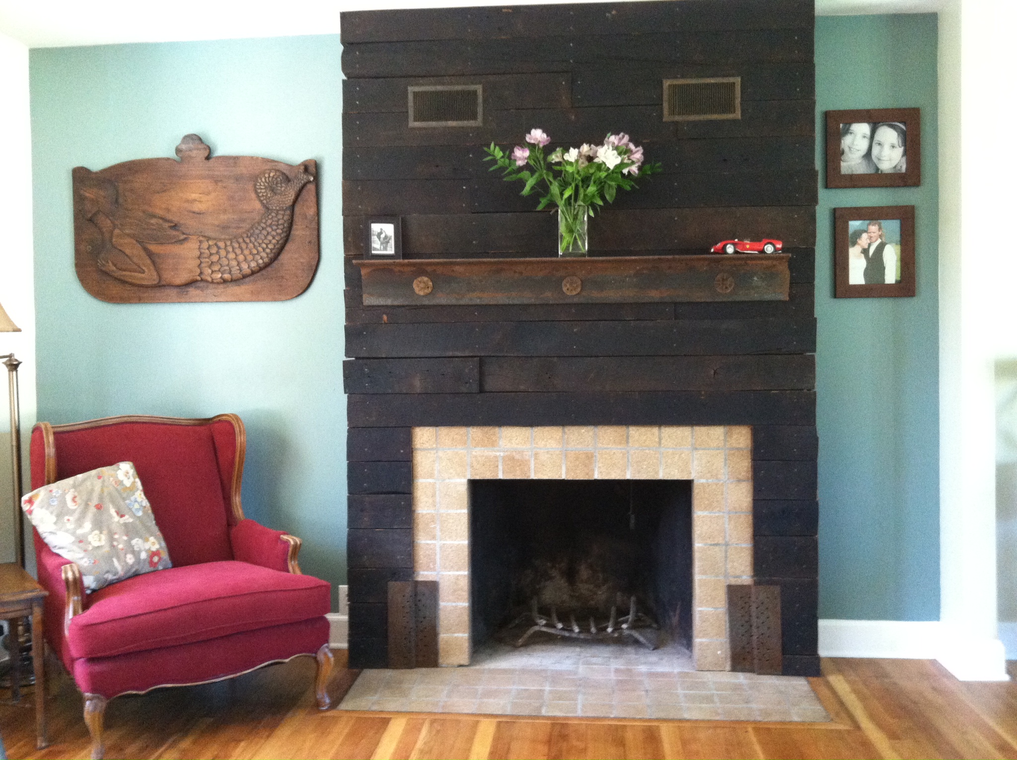Well, we moved, my wife is pursuing a PhD at Vanderbilt so we moved down to Nashville June of 2013. We have been pretty busy since then, adjusting to a new place, remodeling a different house, adjusting to new schools and employment. It has been a huge change, we miss our place in Missoula, we miss our friends and the community. But Nashville has a lot to offer. I have been hiding out at home probably too much but it gives me time to work on the house which we have basically redone from top to bottom in the last 15 months. Here is the fun part, getting creative with our previously ugly ’70’s paneled kitchen and fire place surround. Out went the paneling, in went new cabinets and concrete counters, and for the fire place, reclaimed smoked oak planks from a tobacco smoking barn. That wood was as hard as stone but I predrilled and fastened them with square head nails, finished off with a rusty piece of angle iron as the mantle.