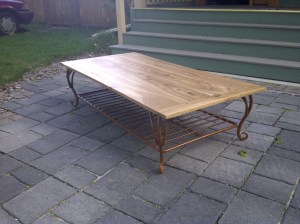 rough sawn 5/4. The frame is a steel framework that I had powder coated at Powder Coating of Monatana. This was made for a client in Missoula and I am currently working on the second table for her.